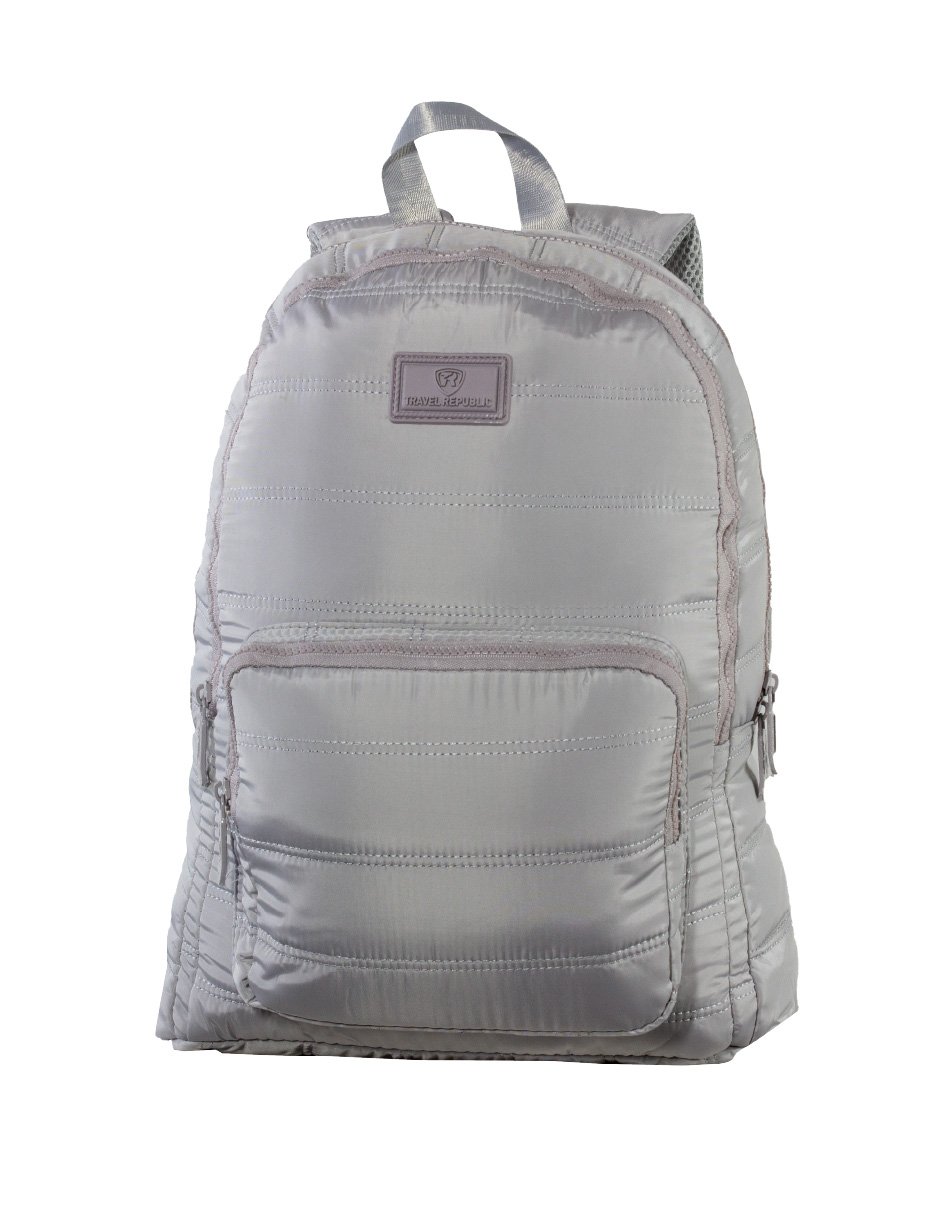 Mochila Travel Republic color plata – diseño moderno, resistente y con estilo.